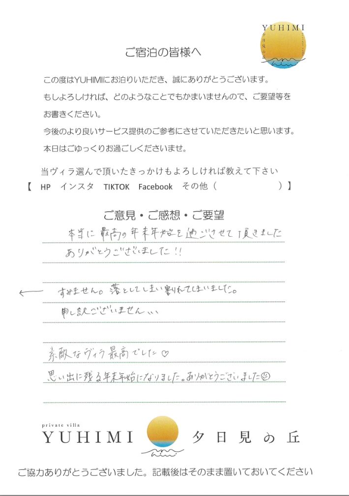 2026年1月ご宿泊のお客様 Y1