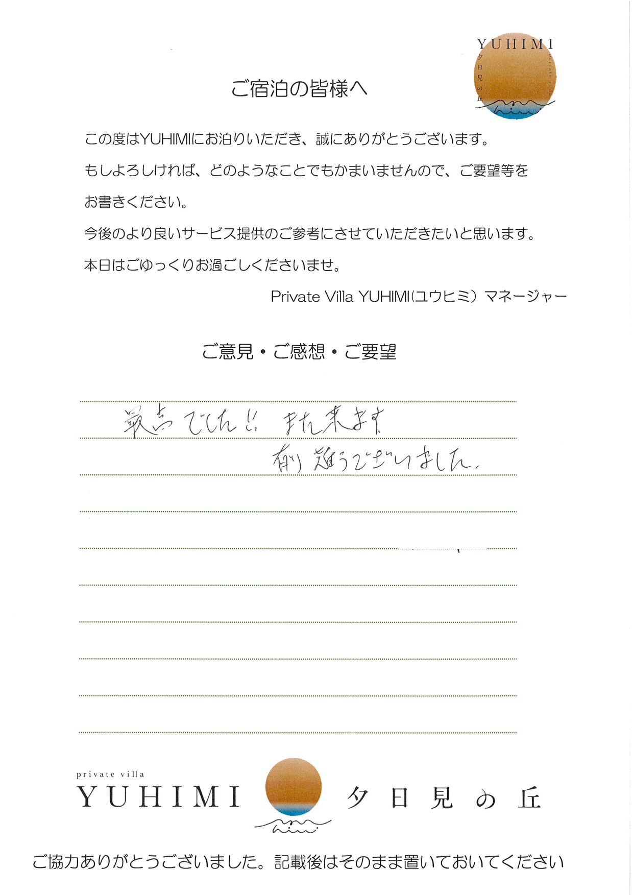 2025年6月ご宿泊のお客様 Y2