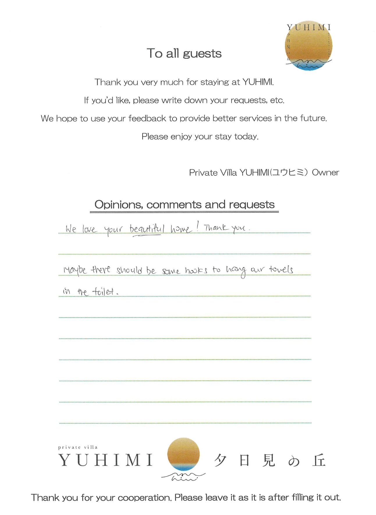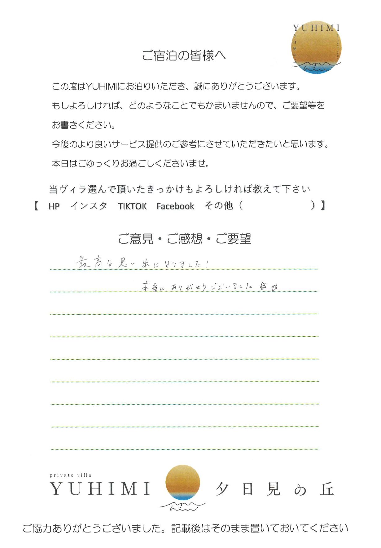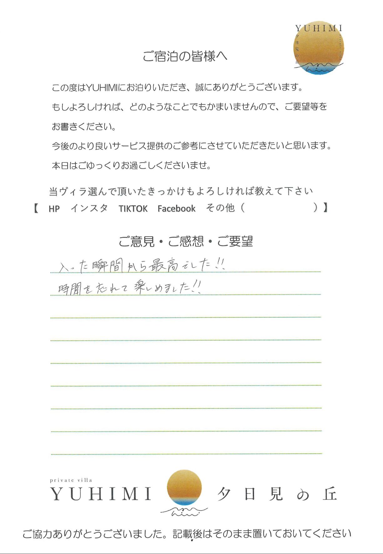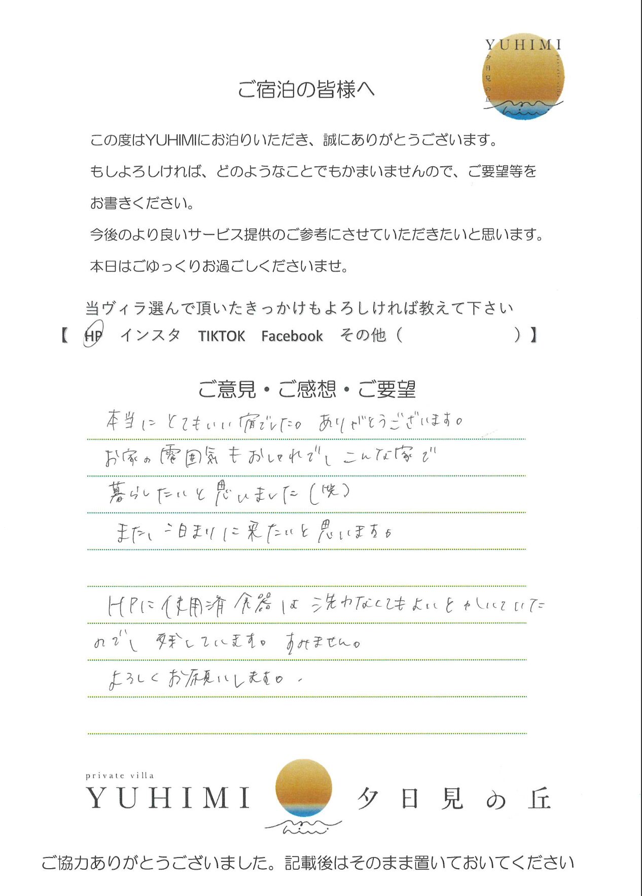 お家の雰囲気もおしゃれで、こんな家で暮らしたいと思いました(笑)また、泊まりに来たいと思います。