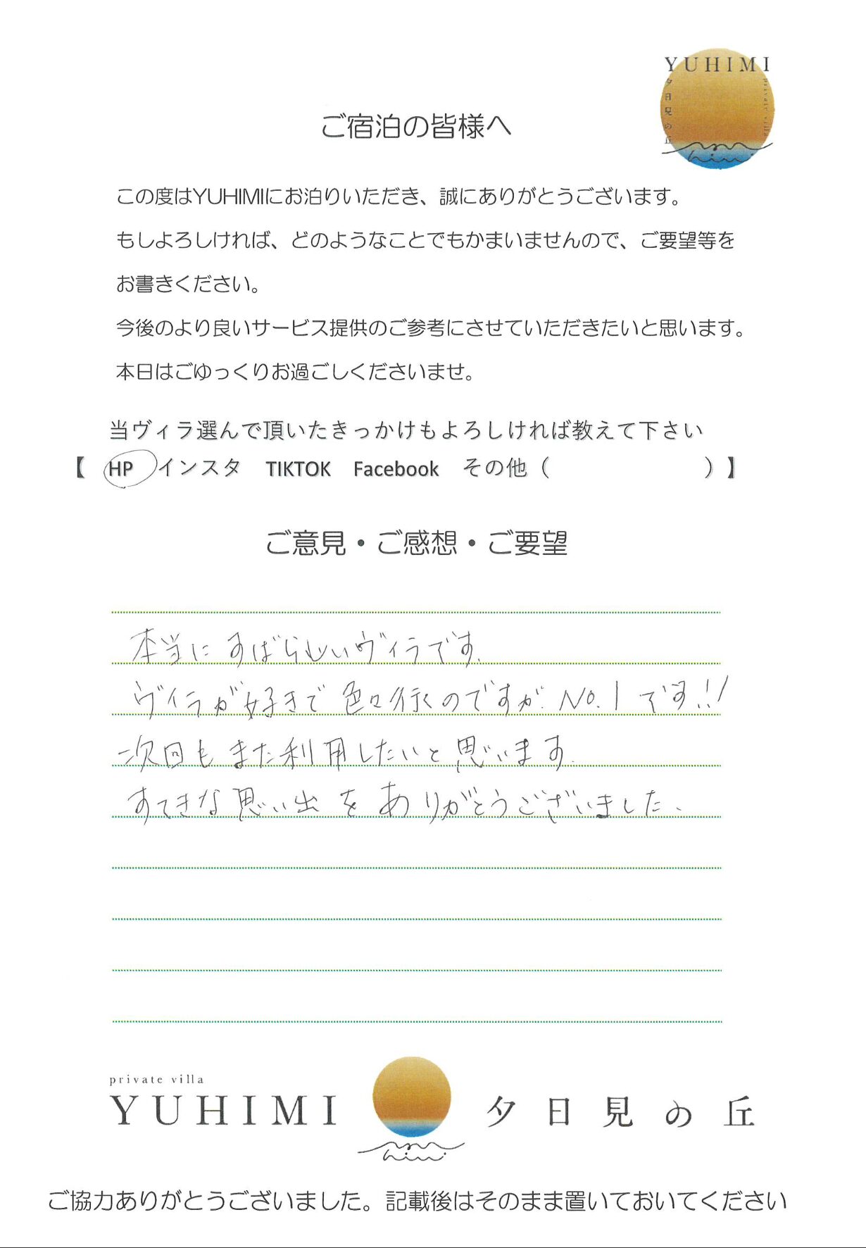 本当に素晴らしいヴィラです。ヴィラが好きで色々行くのですが、No.1です!!次回もまた利用したいと思います。すてきな思い出をありがとうございました。
