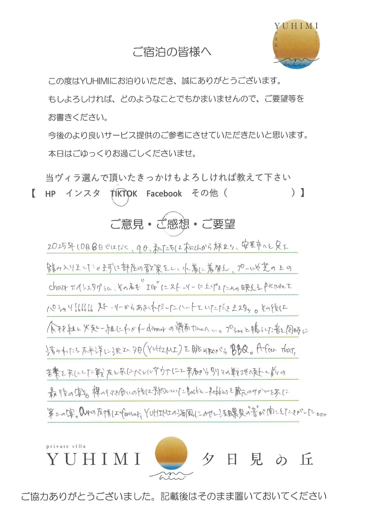 2025年10月ご宿泊のお客様 Y2