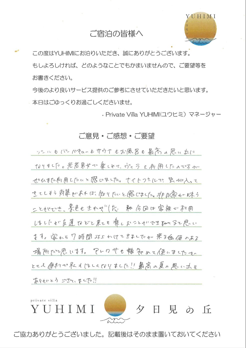 2025年8月ご宿泊のお客様 Y2